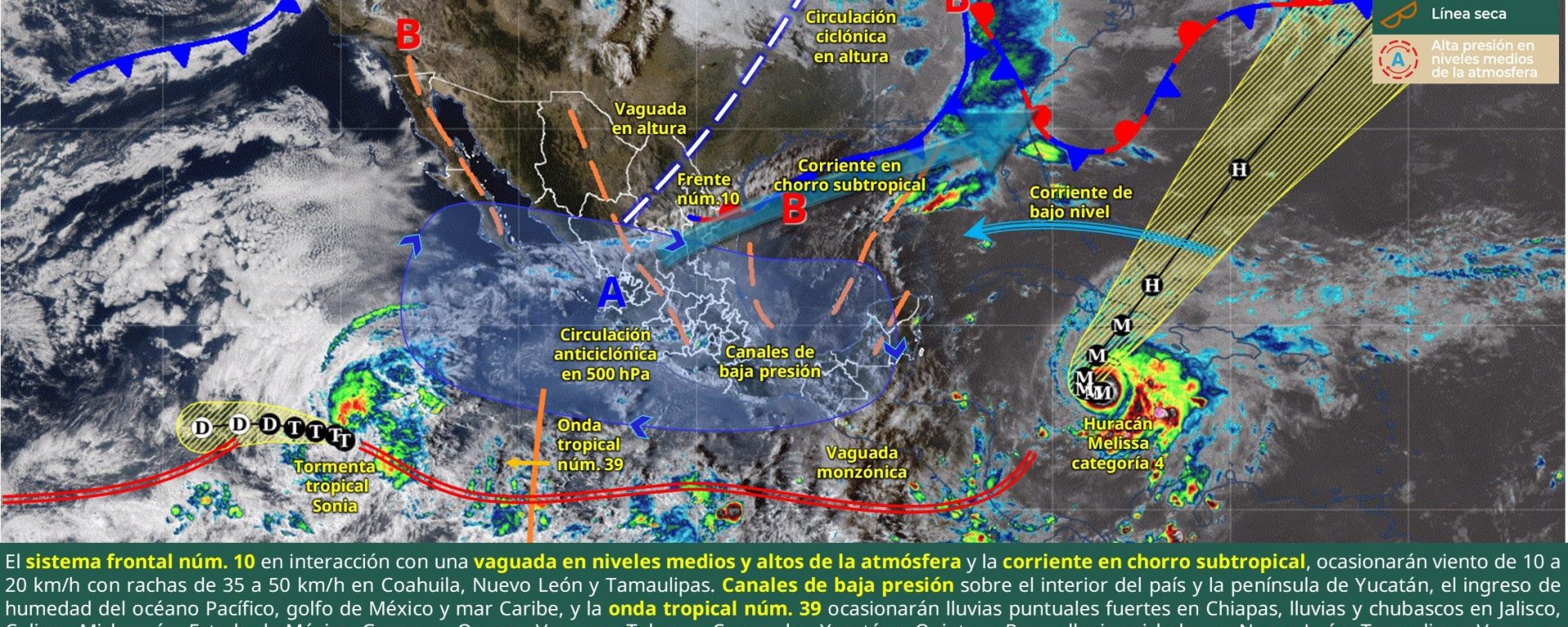 Viento de 10 a 20 km/h con rachas de 35 a 50 km/h: Baja California, Baja California Sur, Sonora (norte), Chihuahua, Coahuila, Nuevo León y Tamaulipas.