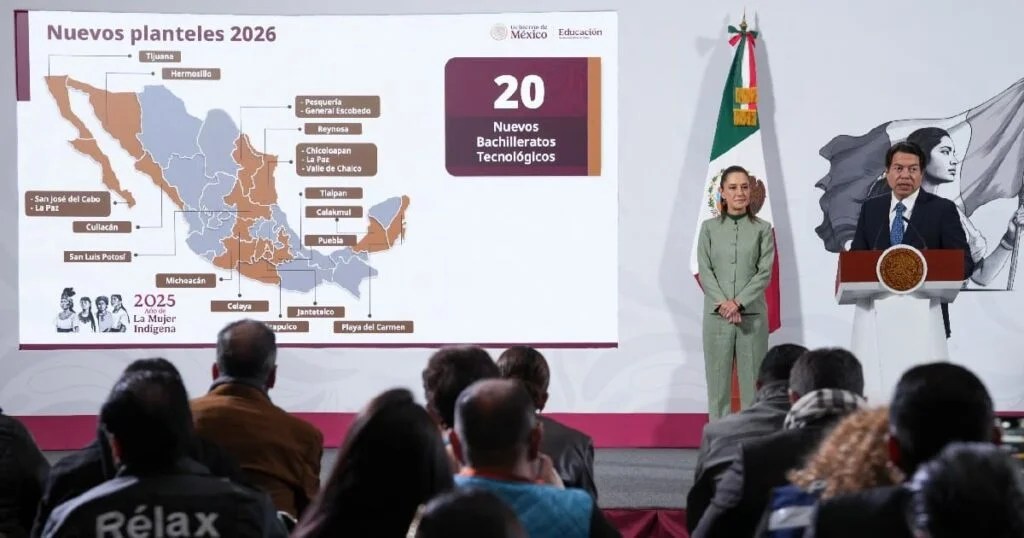 “¿Qué vamos a hacer en el 2026? 65 mil 400 nuevos lugares, es decir, 44 mil 685 más 65 mil 400 con 202 acciones de ampliación; ¿cómo? nuevos planteles, ampliación de planteles existentes y con esto que se llaman los telebachilleratos que le estamos dando una renovación de manera muy importante todos van a estar conectados a internet y están teniendo nuevos esquemas de formación y de enseñanza. De esta manera vamos a cumplir con que haya una preparatoria que quede cerca de la casa”, destacó en la conferencia matutina: “Las mañaneras del pueblo”.