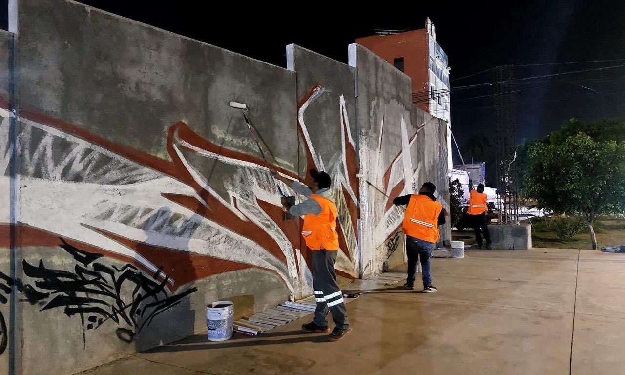Con el fin de mantener en las mejores condiciones el primer cuadro de la ciudad y que sea un digno marco para los eventos programados para la celebración del Día de Muertos, el Gobierno Municipal trabaja durante la noche en el retiro de grafiti y mantenimiento general del mobiliario urbano.