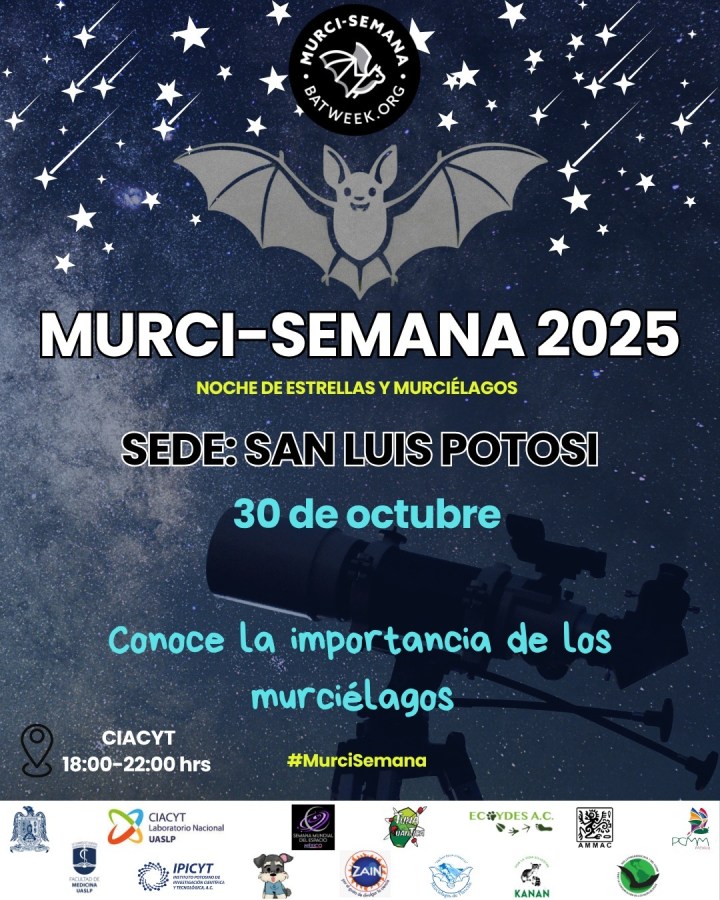 El investigador invitó al público potosino a participar en el evento Murci Semana 2025, que se realizará el 30 de octubre, de 18:00 a 22:00 horas, en las instalaciones de la Coordinación para la Innovación y Aplicación de la Ciencia y la Tecnología (Ciacyt), ubicadas en avenida Sierra Leona #550, colonia Lomas Segunda Sección. La entrada será libre.