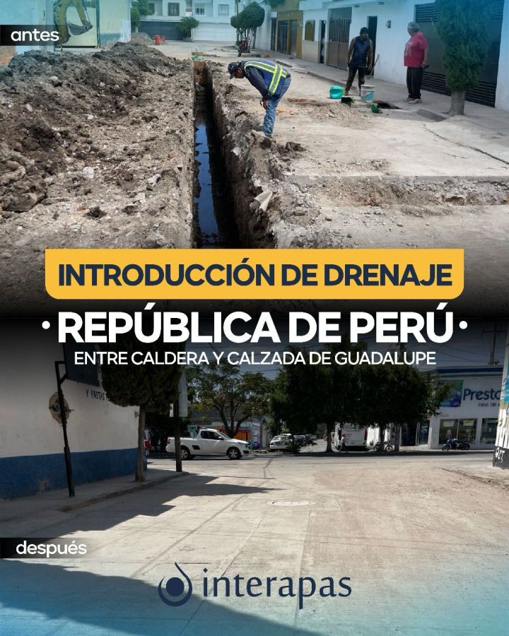 INTERAPAS concluyó la instalación y conexión del nuevo sistema de drenaje sanitario en la calle República de Perú, entre Caldera y Calzada de Guadalupe, en la colonia Santuario, beneficiando a más de 150 habitantes que por primera vez contarán con este servicio esencial en sus hogares.