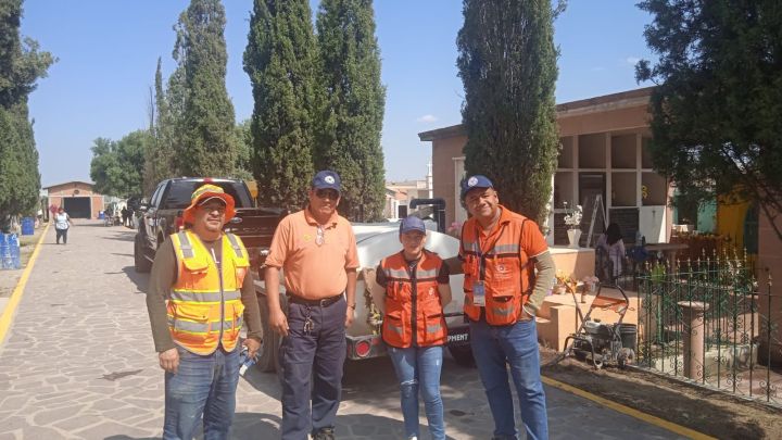 La Dirección Municipal de Protección Civil informó que más de 60 elementos participan en estas labores, trabajando en coordinación con instancias de emergencia y seguridad, con el propósito de mantener una jornada tranquila y ordenada en todos los panteones.