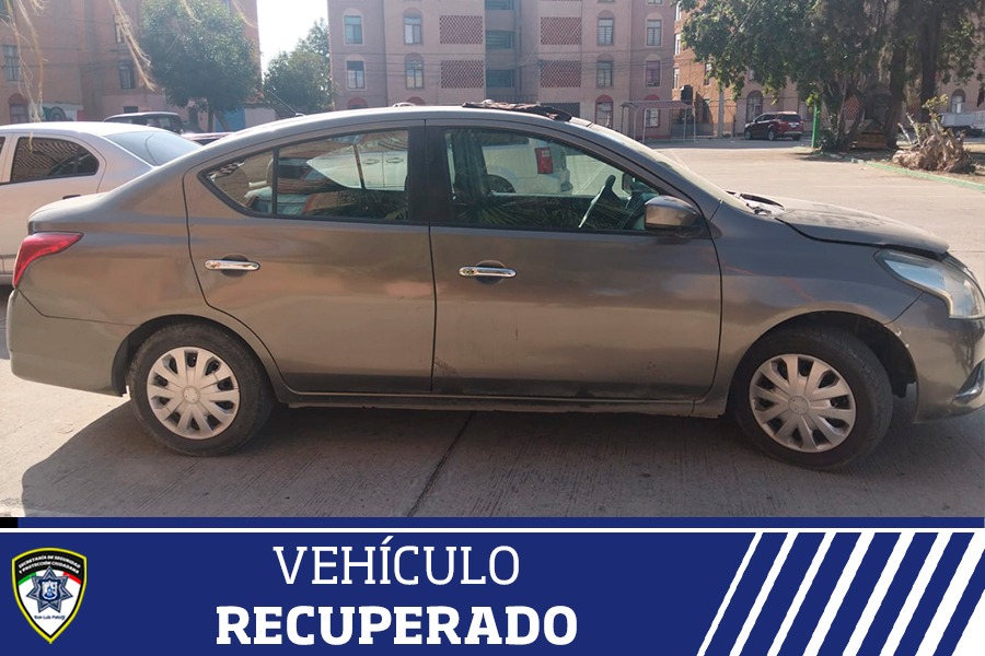 Durante patrullajes preventivos emprendidos en el cuadrante sur, los agentes municipales se dirigieron hacia el fraccionamiento Residencial del Bosque donde localizaron un vehículo Nissan Versa en color arena, que presentaba huellas de desvalijamiento reciente. Al verificar los datos de la unidad en el Sistema único de información policial del C4 Municipal, se supo que se trataba de un vehículo robado con violencia en la colonia Satélite el pasado 2 de noviembre.