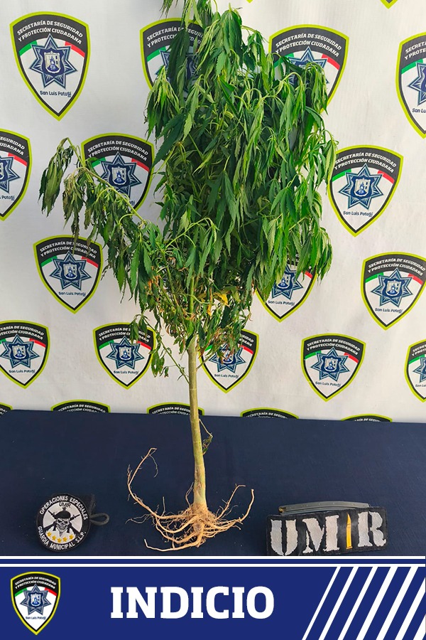 Al continuar el recorrido al interior del fraccionamiento, los agentes municipales localizaron en una jardinera una planta de marihuana con una altura de 1.20 metros. Ante el hallazgo de la planta, se procedió a su retiro y aseguramiento.