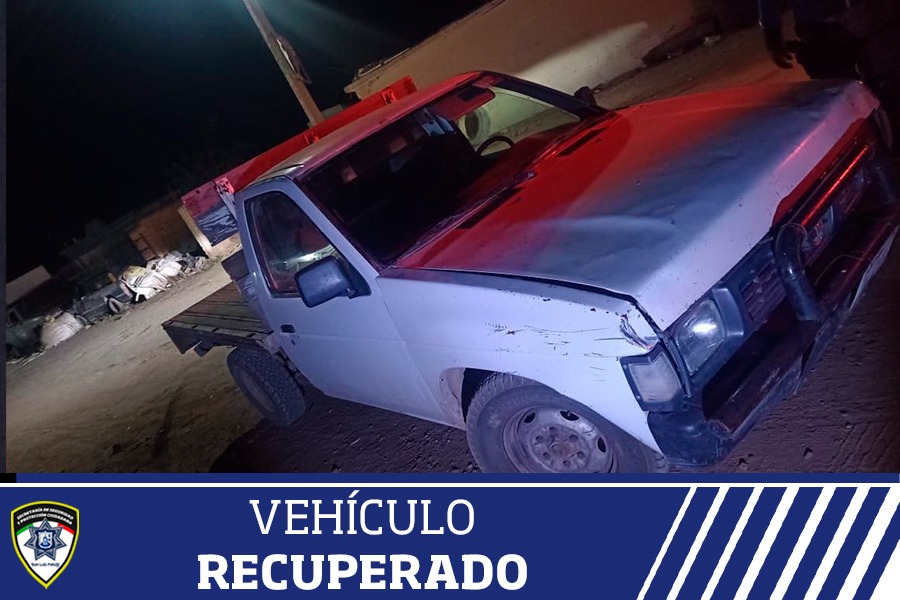Fue en la zona de Camino a San Juanico Chico y Camino a San Juanico Grande que los agentes municipales detectaron una camioneta Nissan Estacas en color blanco, la cual se encontraba con el motor encendido, sin llaves en el switch y con huellas de desvalijamiento reciente.