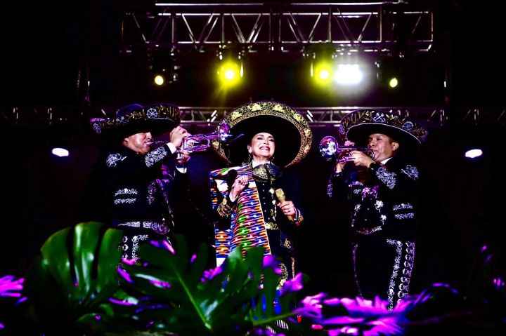 El momento más emotivo de la velada llegó con la presentación de Aida Cuevas, quien interpretó temas emblemáticos del repertorio nacional, acompañada por la Banda Sinfónica. Canciones como La Bikina, México en la piel y un popurrí dedicado a Lucha Villa hicieron vibrar al público, que no dejó de aplaudir y corear cada interpretación de la “reina de la música ranchera”.