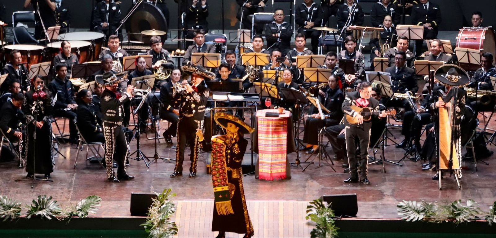 Aida Cuevas y la Banda Sinfónica, Mariachi y Coro de la Secretaría de Marina engalanaron la celebración ante un lleno total en el Teatro de la Ciudad
