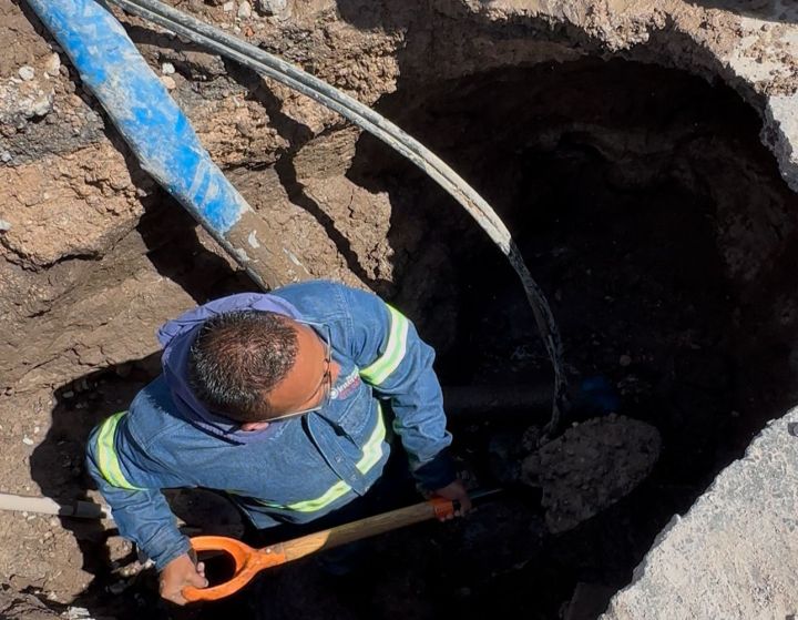 Las cuadrillas de la Dirección de Operación y Mantenimiento realizaron sondeos en las redes de agua potable para detectar el punto exacto. La fuga se encontraba en una tubería de 3 pulgadas, a una profundidad de 1.80 metros, lo que requirió efectuar una excavación profunda.