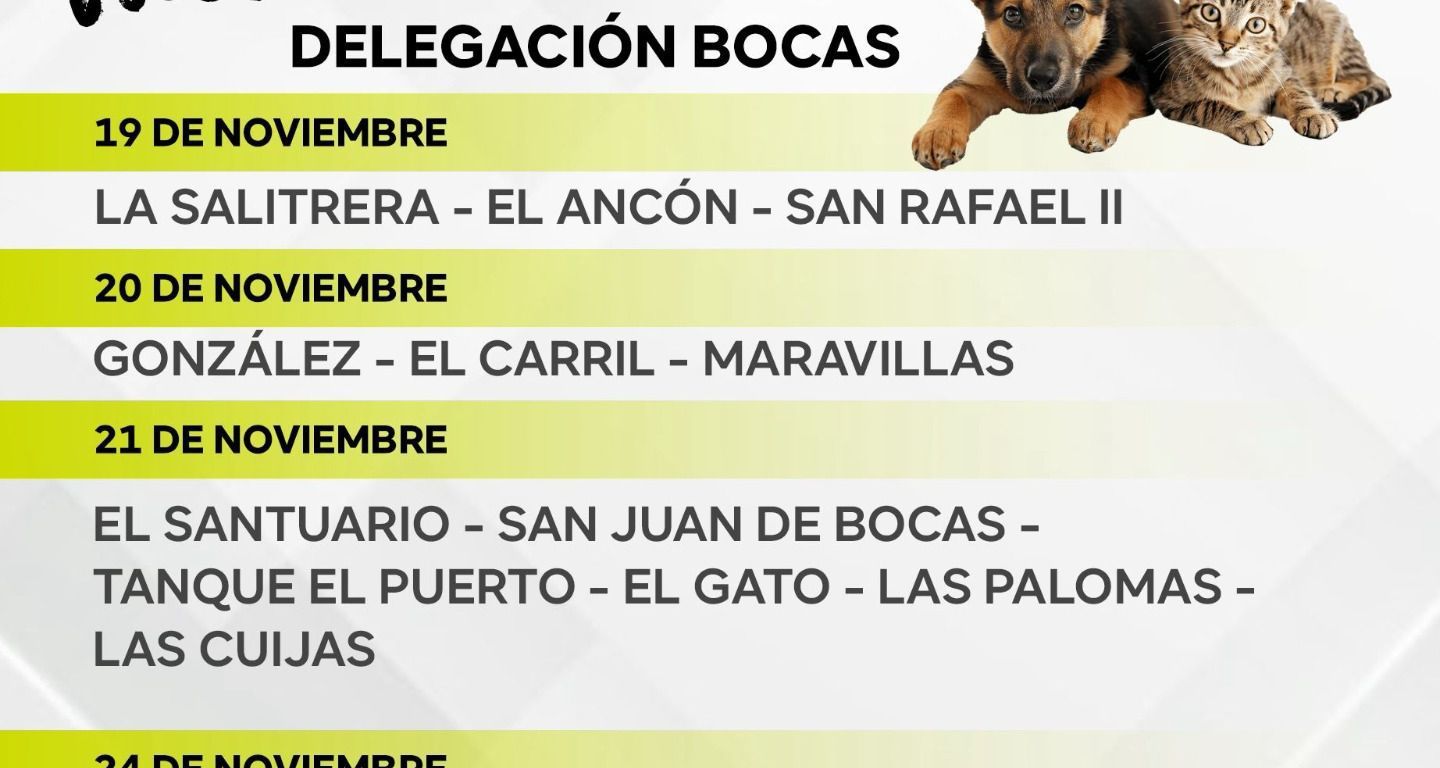 De acuerdo con el calendario el próximo martes 18 de noviembre estará en El Cenzontle-El Mulato-Encina; para el 19, en La Salitrera-El Ancón-San Rafael II; el jueves en González-El Carril-Maravillas; el 21 en El Santuario-San Juan de Bocas-Tanque El Puerto-El Gato-Las Palomas-Las Cuijas; el lunes 24 en El Salto-El Varal-Las Escobas, para concluir el 25 de noviembre en Jesús María. El puesto de vacunación estará en un horario de 10 de la mañana a 1 de la tarde.