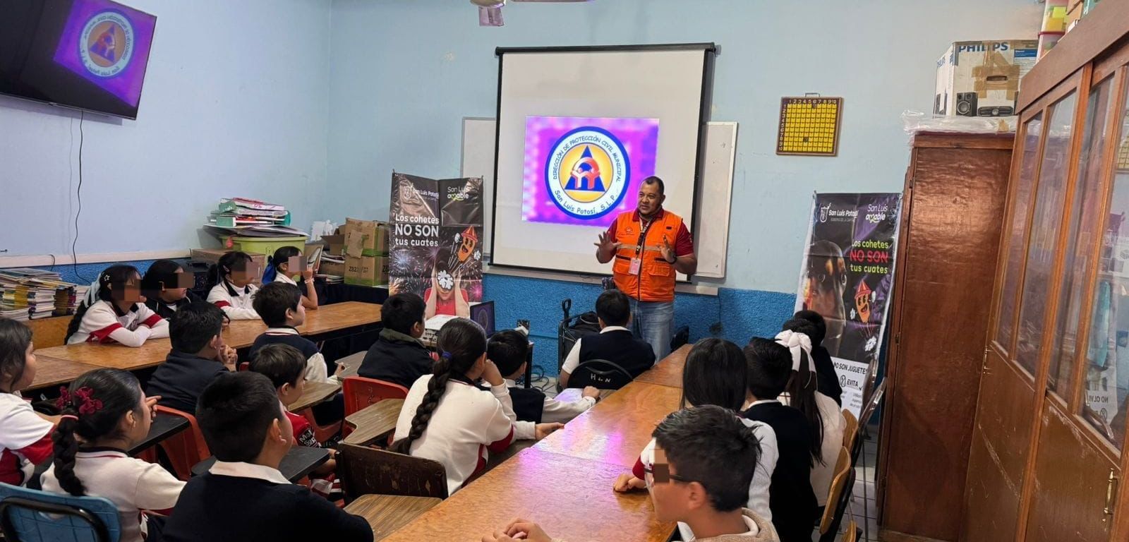 La Dirección Municipal de Protección Civil comenzó la jornada de charlas preventivas en centros escolares de nivel básico, con el objetivo de concientizar a estudiantes, docentes y padres de familia sobre los riesgos del uso de pirotecnia y sus efectos en la salud, el entorno y sectores vulnerables.