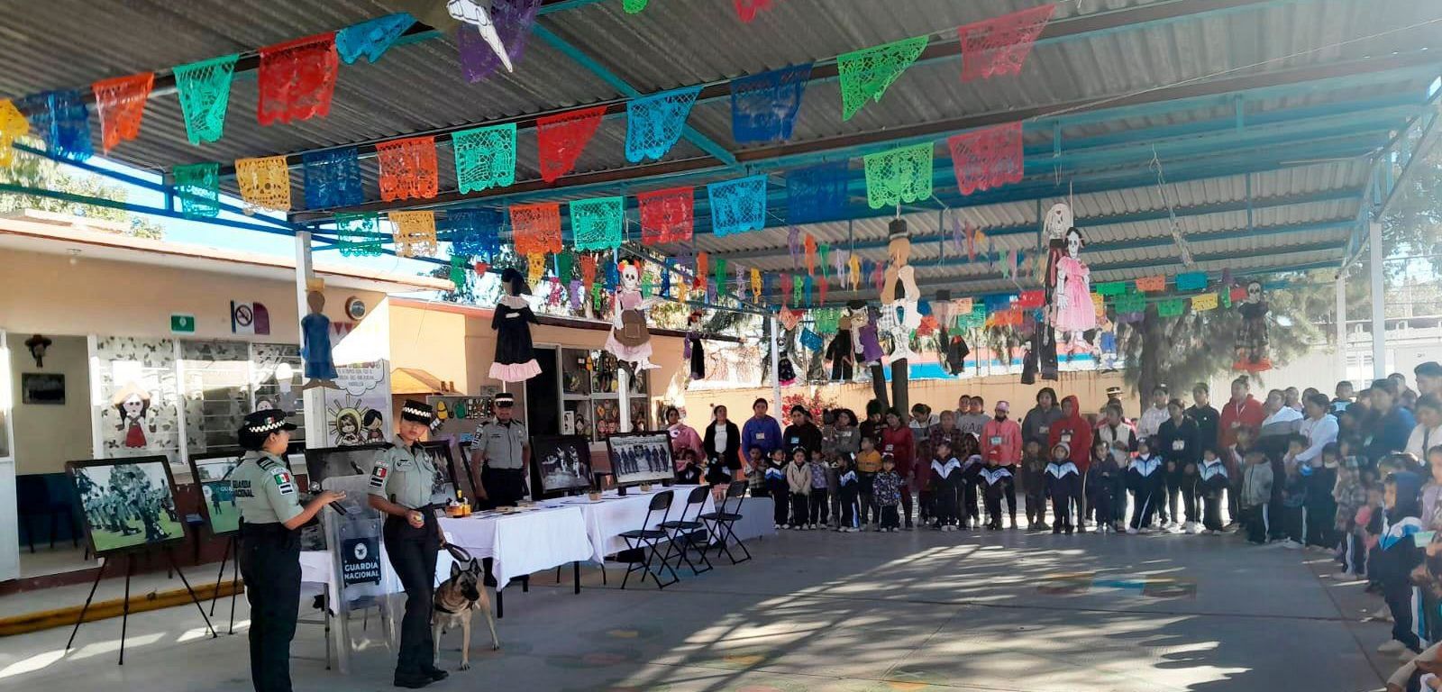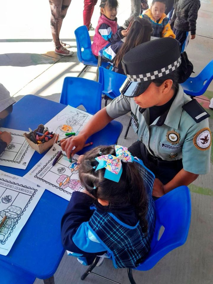 Entre las actividades realizadas por parte de elementos de la Guardia Nacional sobresalen: demostración del equipo táctico; una exposición fotográfica; exhibiciones con el binomio canino; manualidades con alumnas y alumnos; hasta hicieron cortes de cabello y peinados a menores y adultos.