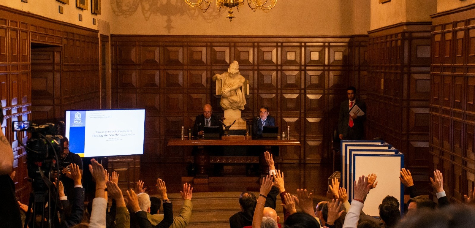 Este día, ejerciendo su autonomía y el derecho a la libre discusión de ideas, integrantes del Consejo Directivo Universitario (CDU) de la Universidad Autónoma de San Luis Potosí (UASLP) acordaron remitir los documentos de la terna propuesta para la elección de la persona titular de la dirección de la Facultad de Derecho Abogado Ponciano Arriaga Leija al Consejo Técnico Consultivo (CTC) de la entidad académica; lo anterior, para su revisión y elaboración de una nueva terna.