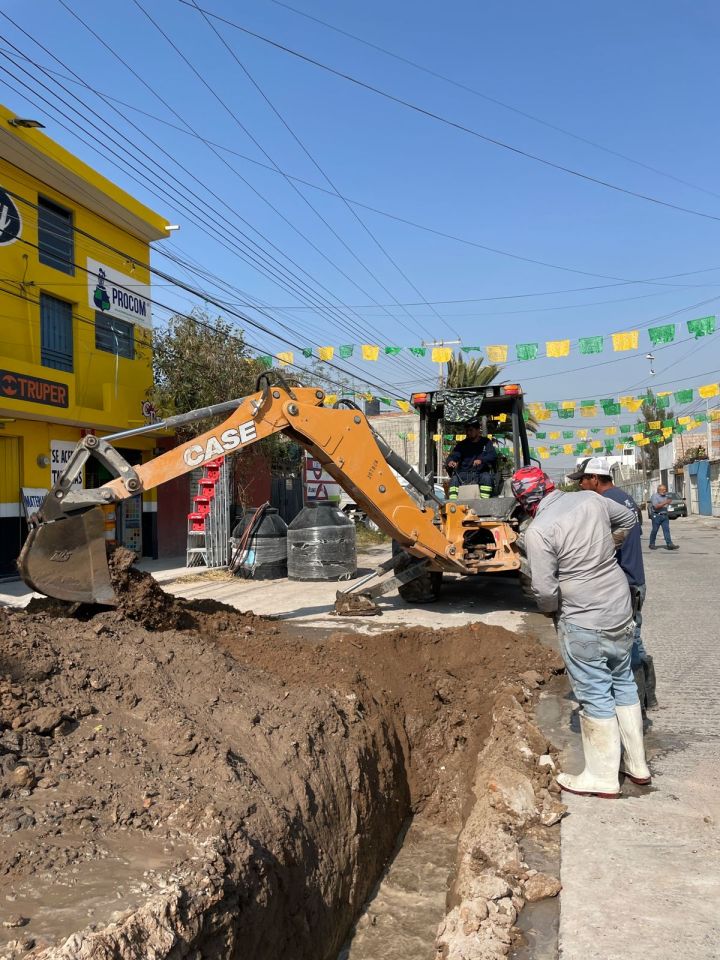 SLP.– INTERAPAS dio inicio a una nueva intervención sanitaria en la colonia Nueva Progreso, con la reposición de un tramo de drenaje sobre Camino Viejo a Guanajuato, entre las calles Cornetas y Centinelas, donde se renuevan 50 metros lineales de tubería PEAD de 12 pulgadas.