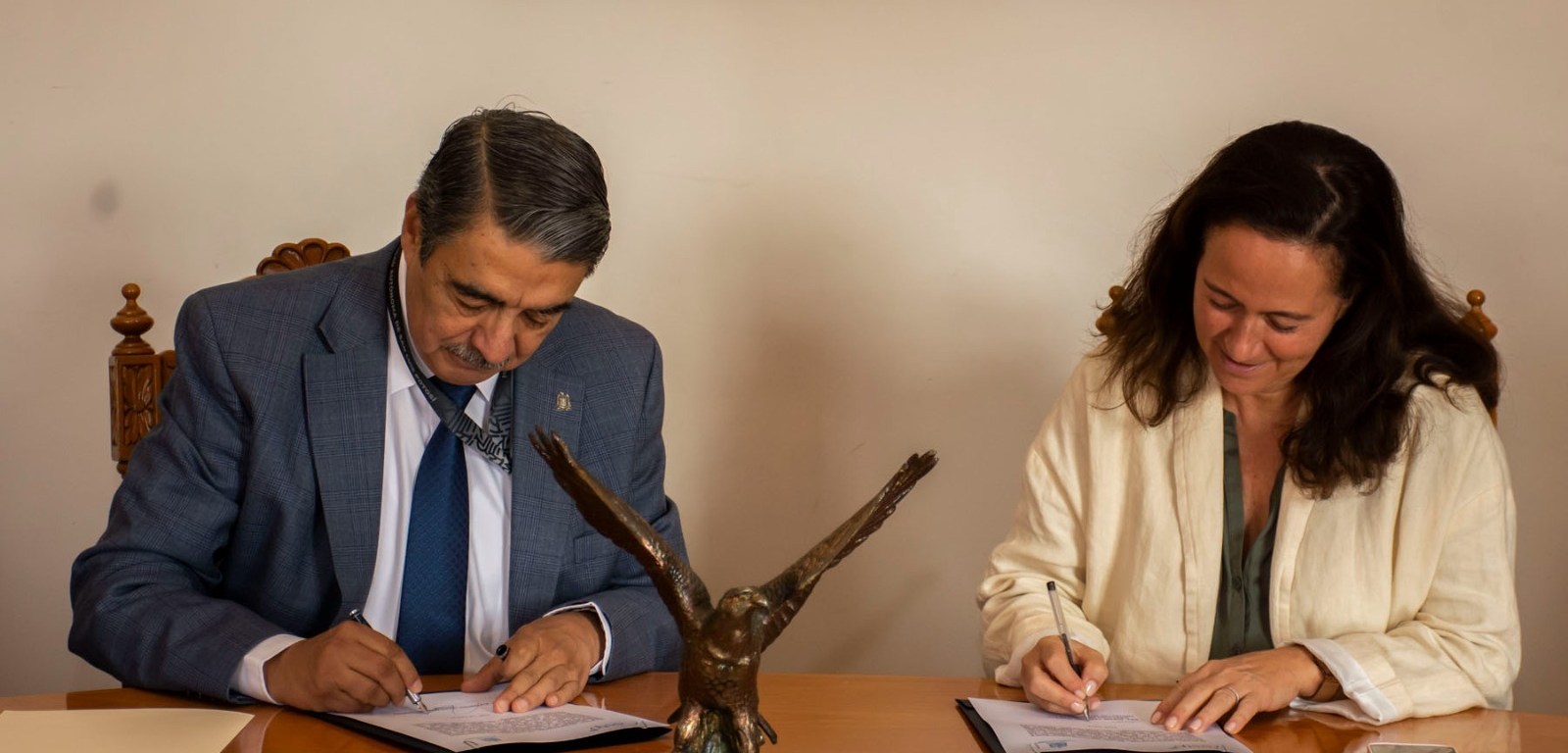 Atestiguaron también la firma de convenio, el secretario general de la UASLP, Mtro. Federico Arturo Garza Herrera; el director de la Facultad de Ingeniería, Dr. Emilio Jorge González Galván; la Lic. Mariela Chávez Ramírez, titular de la Dirección de Internacionalización UASLP; y el profesor investigador, doctor Alfredo Ávila Galarza.