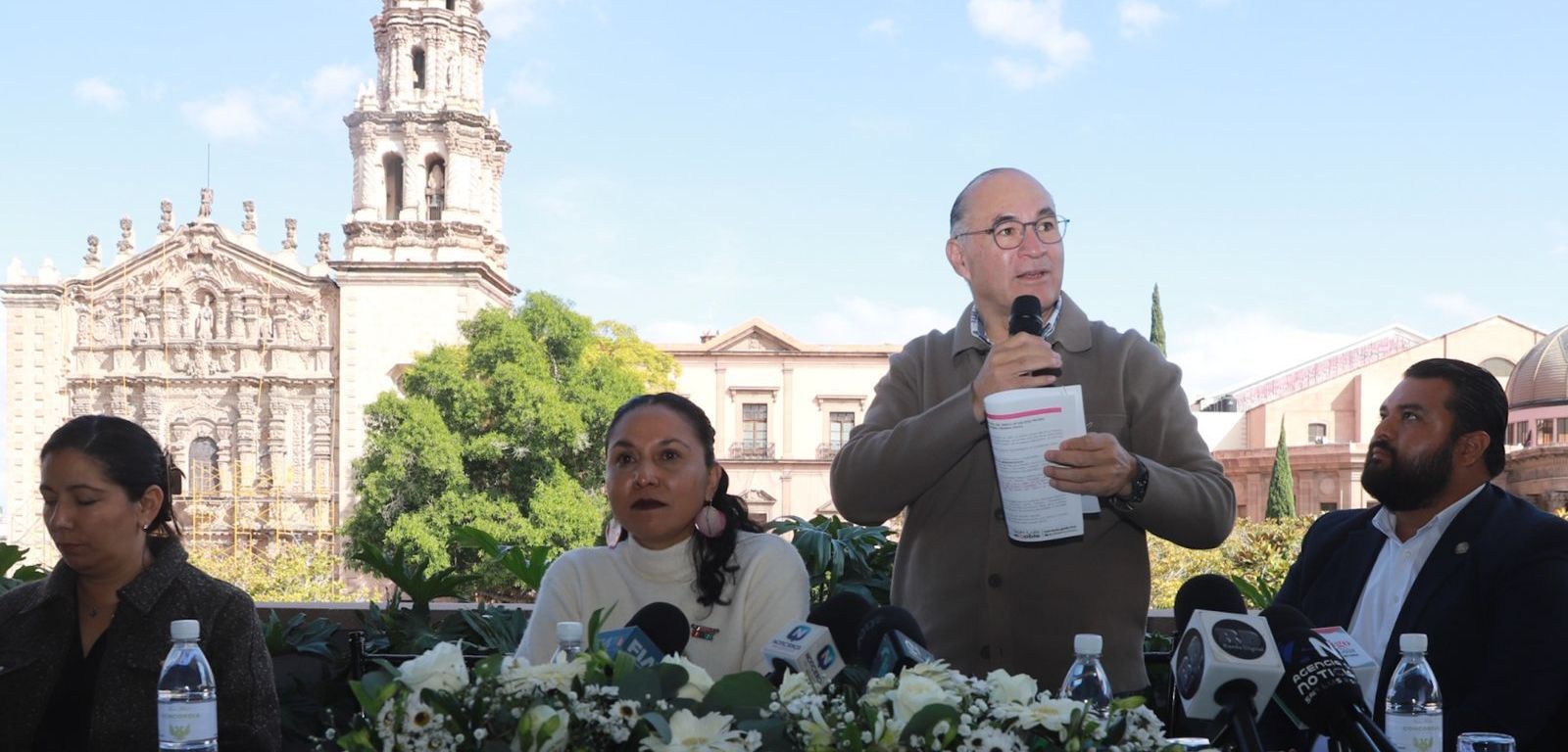 El Alcalde Enrique Galindo Ceballos anunció el arranque del proyecto de conservación de la portada principal del Templo de Nuestra Señora del Carmen, un esfuerzo conjunto entre el Ayuntamiento de San Luis Potosí y el Gobierno Federal para rescatar uno de los monumentos más representativos del Centro Histórico y parte del Patrimonio de la Humanidad. Destacó que esta intervención reafirma el compromiso de su administración con la protección del patrimonio tangible de las y los potosinos. Recordó además que, como Presidente de la Asociación de Ciudades Mexicanas del Patrimonio Mundial, acudió al Senado de la República para gestionar más recursos que permitan continuar con acciones similares.