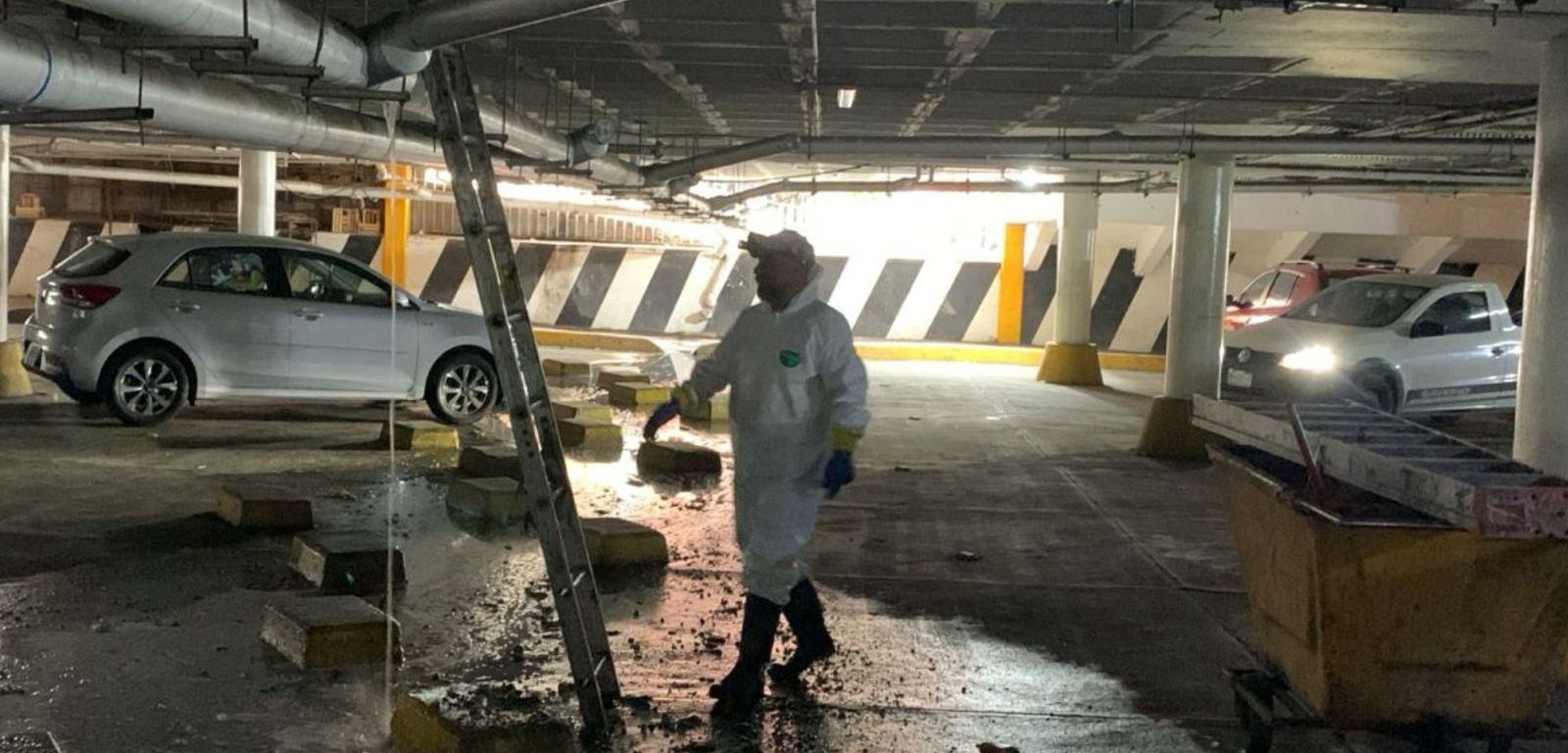 La Unidad de Gestión del Centro Histórico llevó a cabo trabajos de mantenimiento en la red de drenaje del estacionamiento del Mercado República, con el objetivo de mejorar las condiciones operativas de este espacio comercial.