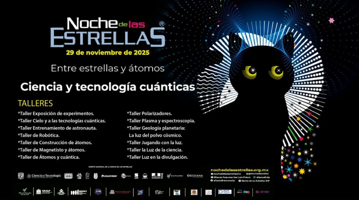 Bajo el lema “Entre estrellas y átomos: Ciencia y tecnologías cuánticas”, esta edición ofrece un recorrido por el mundo de la física moderna mediante actividades que conectan la observación astronómica con conceptos fundamentales de la mecánica cuántica. Entre ellas destaca la explicación del célebre experimento mental “El gato de Schrödinger”, que permitirá introducir al público a la idea de superposición cuántica.