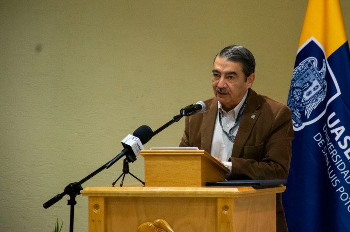 Por su parte, el Dr. Alejandro Javier Zermeño Guerra, rector de la UASLP, resaltó el valor histórico de la Facultad de Ciencias Químicas y el esfuerzo de generaciones que han mantenido su calidad a lo largo de 147 años. Reconoció la labor de la Dra. Lucía Valle y de las y los exdirectores, así como la importancia de la colaboración interdisciplinaria en los retos actuales de la educación superior. Subrayó que la universidad, pese a momentos complejos, continúa aportando significativamente al desarrollo del estado gracias al trabajo conjunto de académicos, investigadores y estudiantes.