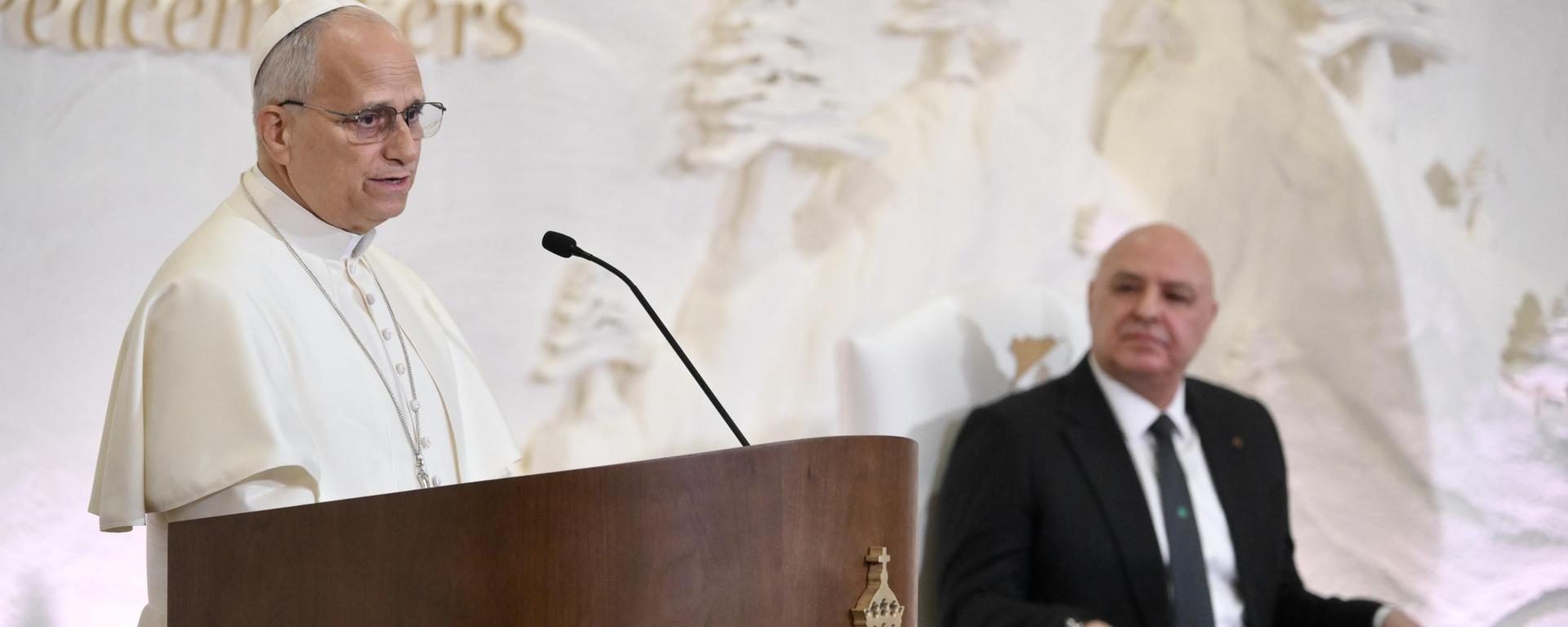 León XIV dedica su primer discurso en el Líbano a los constructores de paz (@Vatican Media)
