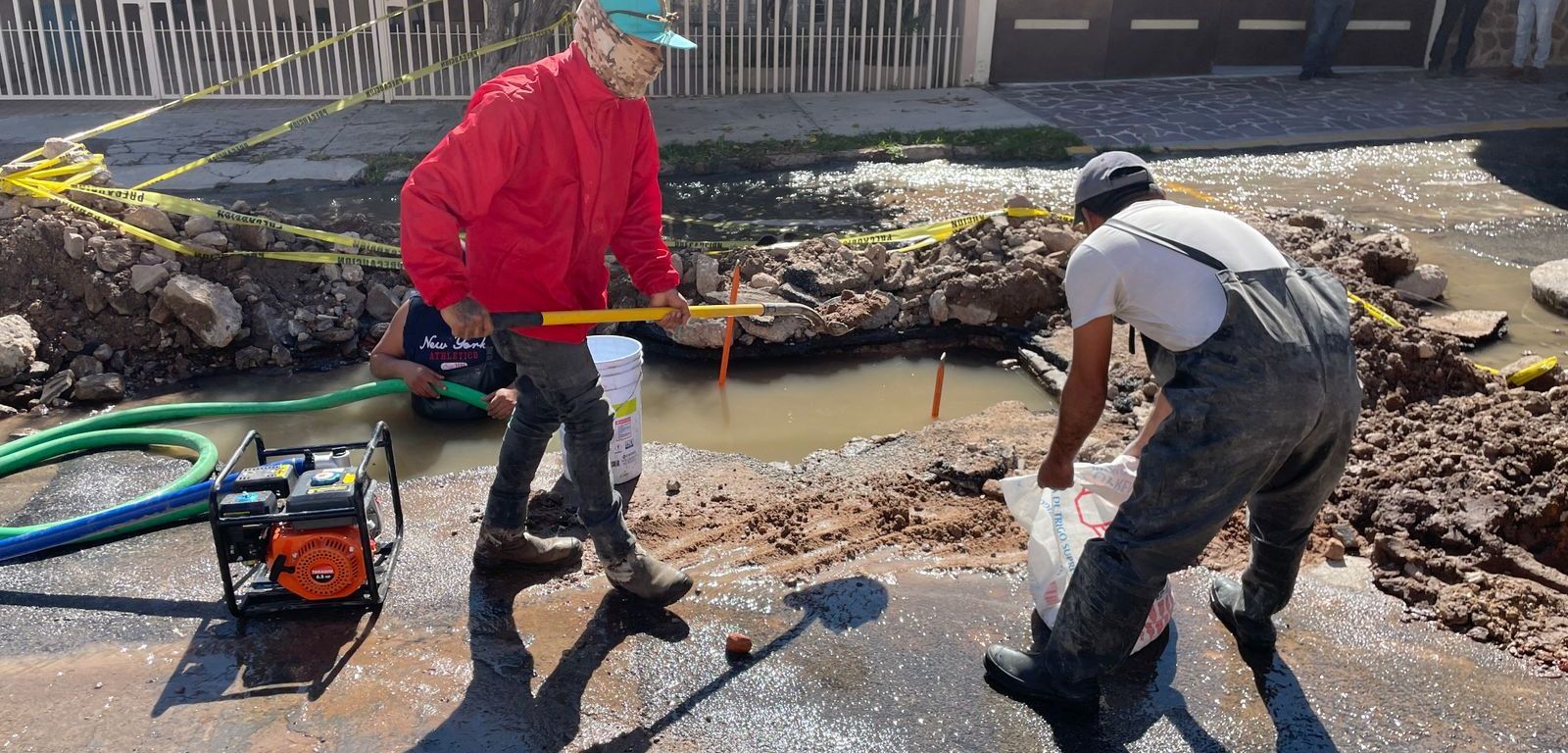 Durante este miércoles, Interapas llevó a cabo labores en el circuito Maestros Ilustres, en la colonia Universitaria, donde se atendió y reparó una fuga en la red sanitaria.