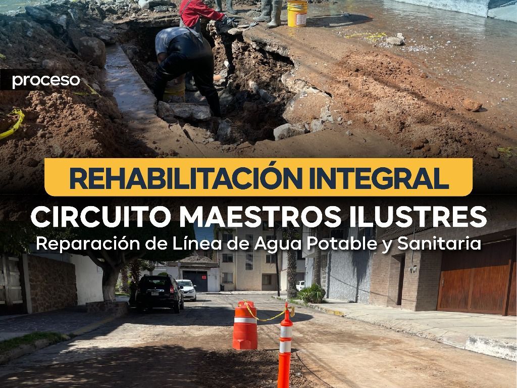 SLP.- Tras jornadas de trabajo intenso, las cuadrillas de INTERAPAS concluyeron la rehabilitación integral del circuito Maestros Ilustres, en la colonia Universitaria, luego de atender una fuga de aguas residuales que había afectado con escurrimientos varias calles de la zona.