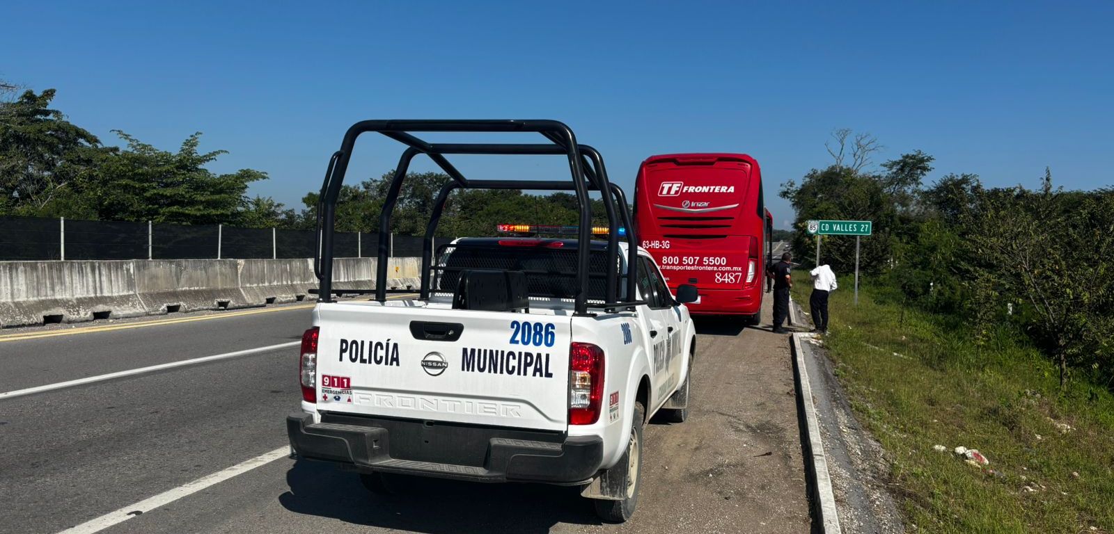 CIUDAD VALLES, S.L.P. – Elementos de la Dirección de Seguridad Pública y Tránsito Municipal de Ciudad Valles implementan operativos de seguridad y presencia sobre la carretera federal Valles–Tamazunchale, dentro de su jurisdicción territorial.