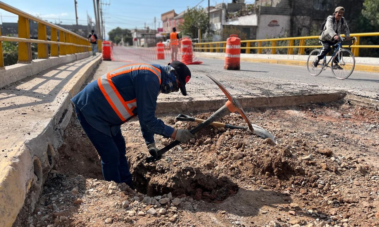 El Gobierno Municipal de San Luis Capital informó que continúan en proceso los trabajos de reparación con concreto del puente ubicado en avenida del Sauce, en las inmediaciones del Río Paisanos, que conecta a las colonias Ponciano Arriaga y María Cecilia, como parte de las acciones permanentes para conservar en óptimas condiciones la infraestructura vial de la ciudad.