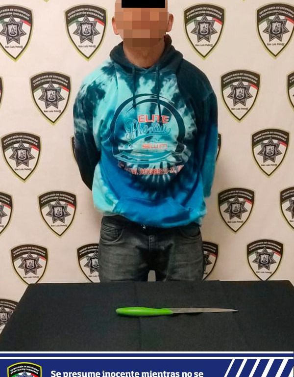 En el lugar se decomisó un cuchillo con 33 centímetros de hoja metálica, en tanto el involucrado fue canalizado al área de Justicia Cívica de la SSPC para su certificación médica y posteriormente puesto a disposición de la Fiscalía General del Estado para determinar su situación legal.