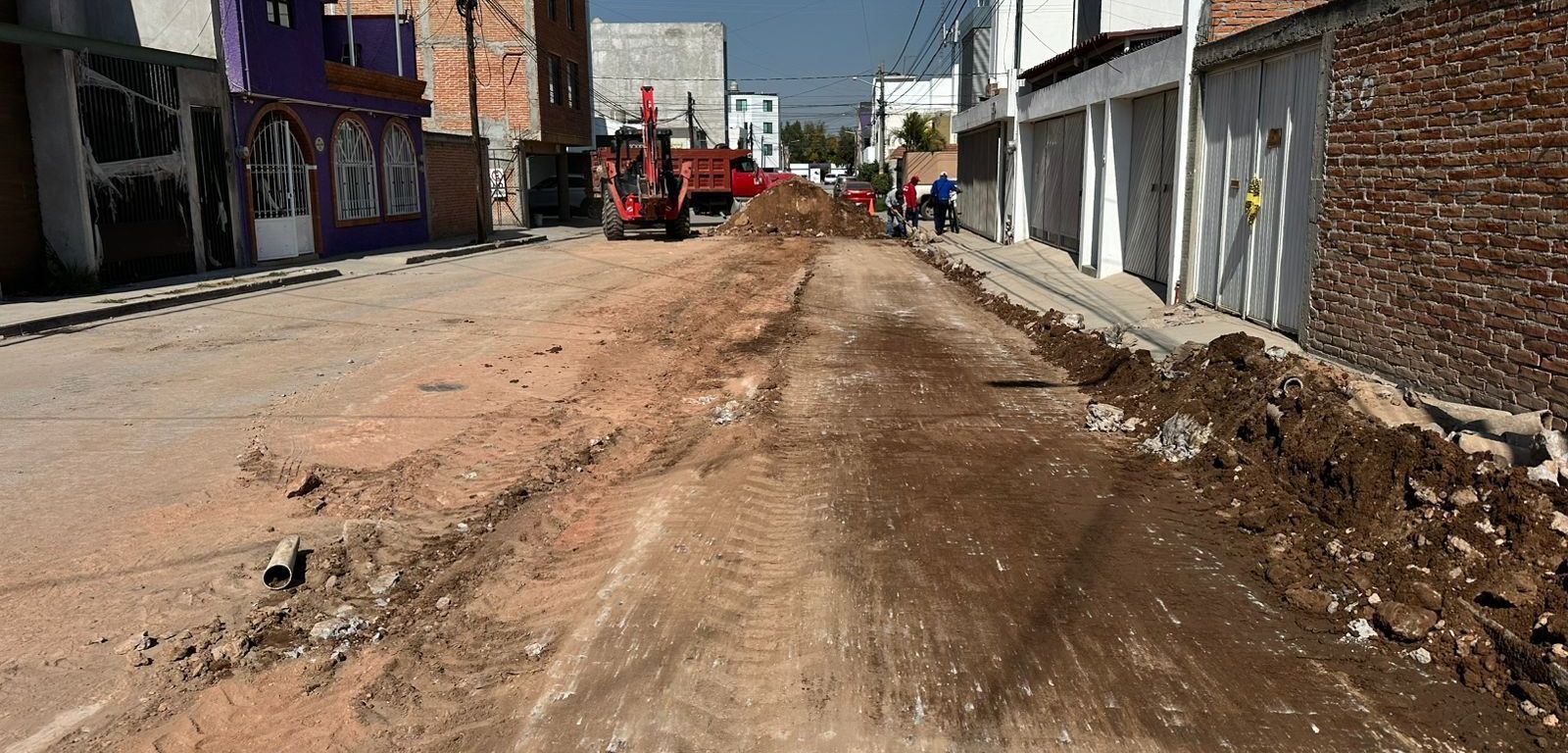 • Actualmente, los trabajos se encuentran en la etapa de bacheo, que incluye la colocación de material de base, relleno y compactación