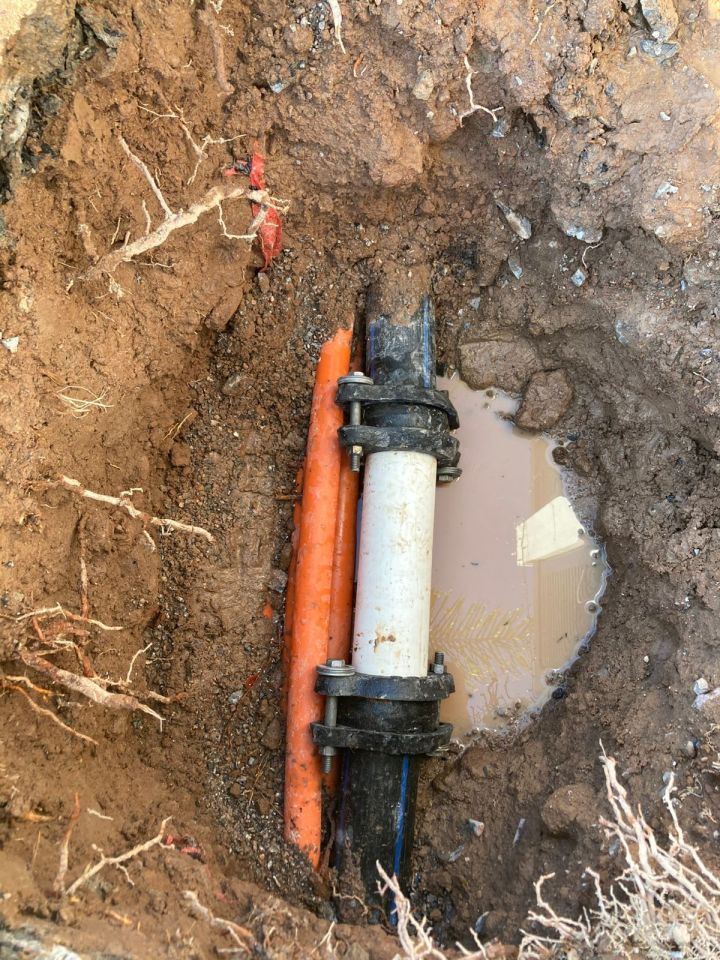 La falla se localizaba en una línea de agua potable de 3 pulgadas que cruza la zona, por lo que personal del organismo realizó el cambio del tramo dañado para restablecer el suministro y normalizar el funcionamiento de la red.