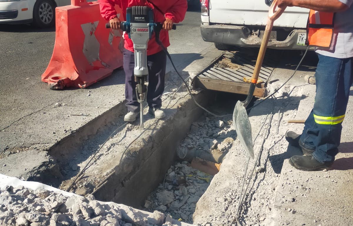 En atención inmediata a un reporte ciudadano, el Gobierno de la Capital, a través de la Dirección de Obras Públicas, lleva a cabo trabajos de reparación y reposición de las rejillas pluviales de la calle Cereales esquina con Periférico, en la colonia Central de Abastos, una zona de alta afluencia vehicular y actividad comercial.