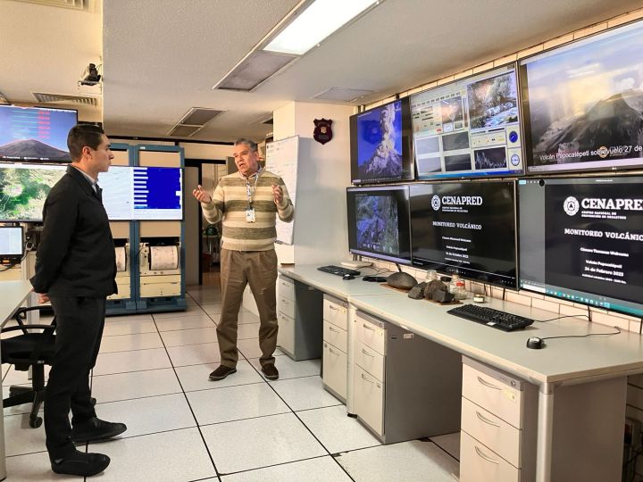 El titular de la Dirección Municipal de Protección Civil, Alejandro Polanco Acosta, sostuvo una reunión de trabajo con el director general del Centro Nacional de Prevención de Desastres (CENAPRED), Enrique Guevara Ortiz, con el objetivo de intercambiar conocimientos y fortalecer la preparación en materia de protección civil.