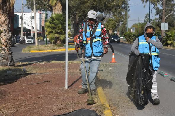 Personal de Servicios Municipales trabaja en el rescate de espacios públicos en la zona aledaña al Parque Tangamanga II y el Cementerio El Saucito.