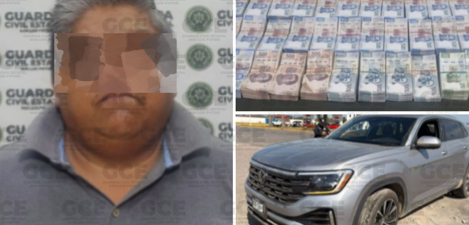 •Trasladaba en una camioneta la cantidad de $2,300,000.00 en efectivo en billetes de denominación de $1000, $500 y $200 pesos.