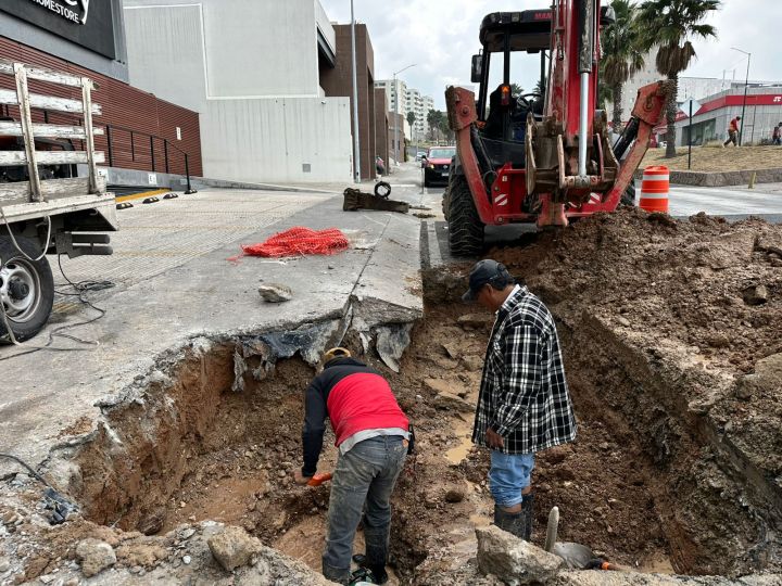 El desperfecto se localiza en una línea de agua potable de 10 pulgadas de diámetro, por lo que fue necesaria la intervención inmediata de las cuadrillas especializadas para contener la fuga y evitar el desperdicio del recurso.
