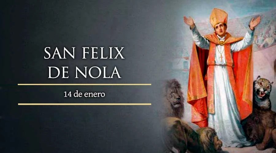 Natural de Nola, abrazó el servicio apostólico desde muy joven. Al morir su padre, Félix distribuyó su herencia entre los pobres y fue ordenado sacerdote por San Máximo, Obispo de Nola. Al iniciarse una cruel persecución contra la Iglesia, Máximo huyó al desierto para continuar al servicio de su rebaño. Al no ser encontrado por los soldados romanos, Felix, quien lo sustituía en sus deberes pastorales, fue tomado preso, azotado, cargado de cadenas y encerrado en el calabozo cuyo piso estaba lleno de vidrios.