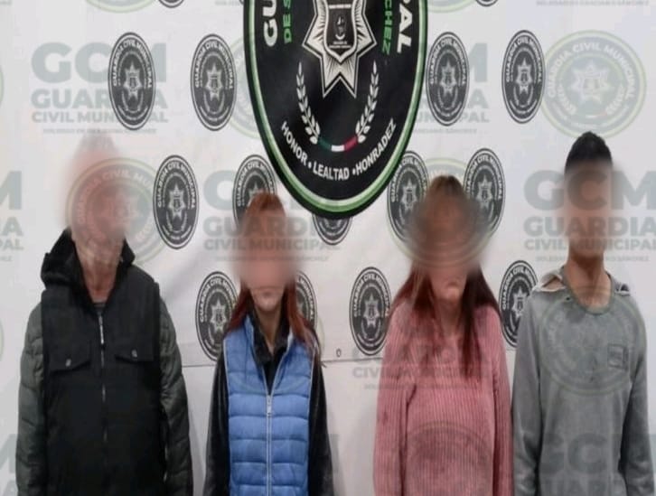 Cuando agentes municipales transitaban sobre la Privada Guadalupe, en la colonia mencionada, observaron a cuatro personas que alteraban el orden, mismos a los que se acercaron, y luego de proceder conforme al debido protocolo de actuación lograron entrevistarlos, identificándose como Jennifer “N” de 26 años, Diana “N” de 31 años, Fidel “N” de 60 y Yair “N”, señalándose todos de agredirse de forma física.