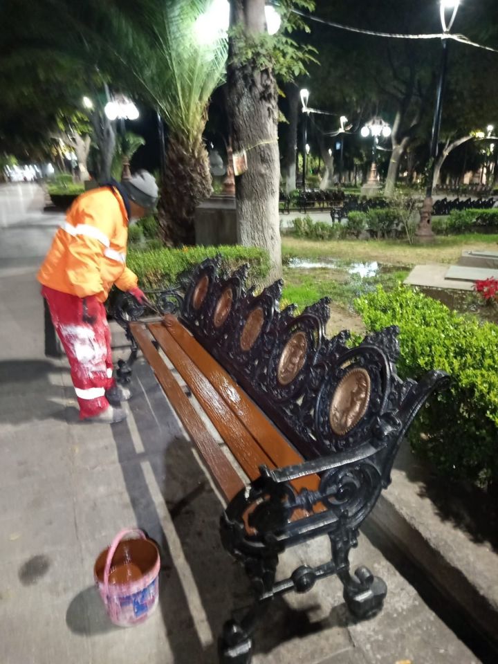 Otro punto de atención del Gobierno de la Capital fue el Jardín Colón, donde trabajadores municipales realizaron labores de limpieza y reparación de bancas y del mobiliario urbano.