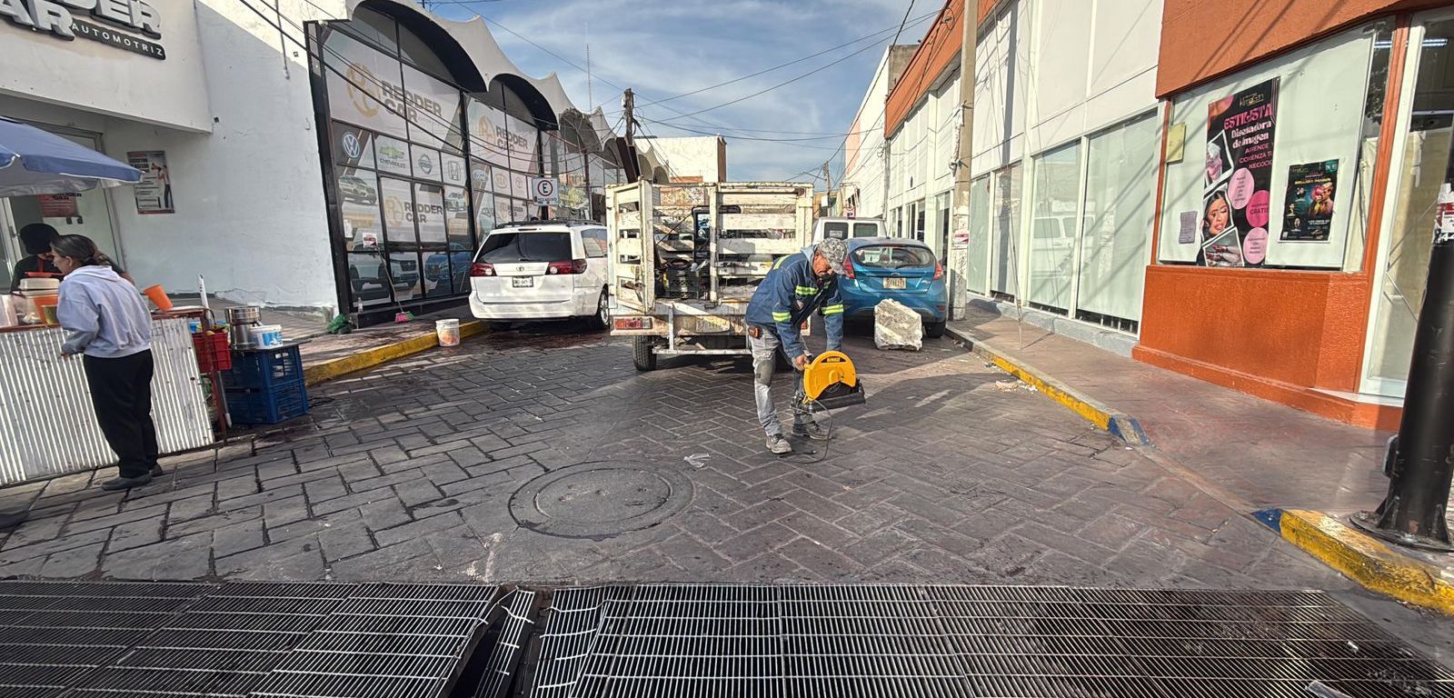 La Unidad de Gestión del Centro Histórico (UGCH) informó sobre la reparación de una rejilla pluvial ubicada en el cruce de las calles de Uresti y Madero, como parte de las acciones permanentes de mantenimiento que se realizan en el primer cuadro de la ciudad para garantizar condiciones óptimas de movilidad y seguridad.