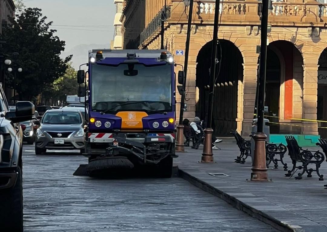 Este día, las tareas fueron reforzadas con el apoyo de una barredora mecánica, que realizó trabajos de limpieza en calles aledañas a las plazas, optimizando los tiempos de atención y mejorando las condiciones de aseo urbano en la zona.