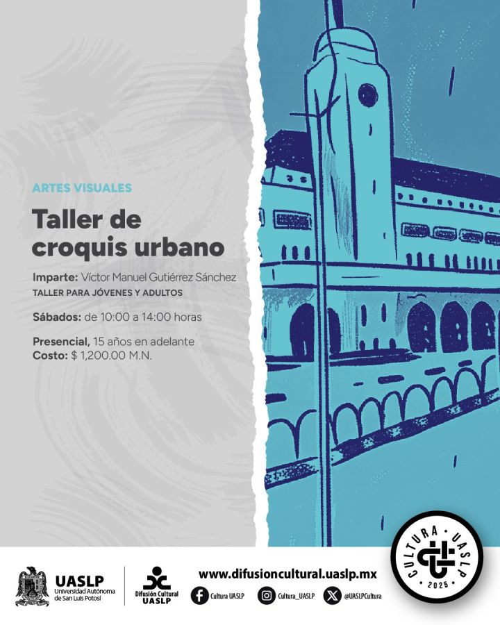 El Departamento de Arte y Cultura de la Universidad Autónoma de San Luis Potosí (UASLP) convoca a la comunidad universitaria y al público en general a participar en el Taller de Croquis Urbano, impartido por el doctor Víctor Manuel Gutiérrez Sánchez, docente de la Facultad del Hábitat y del Centro Universitario de las Artes (CUART), como parte de los cursos semestrales febrero–mayo 2026.