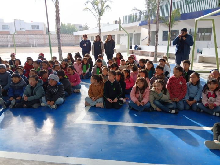 En esta ocasión, se visitó la escuela vespertina “Manuel José Othón” en la cabecera municipal de Soledad de Graciano Sánchez, donde se abordaron temas como la huella hídrica y el agua virtual, a través de ejemplos prácticos que permitieron a las y los estudiantes identificar la cantidad de agua que se utiliza en la producción de bienes de uso cotidiano, así como reflexionar sobre la importancia de los hábitos de consumo.
