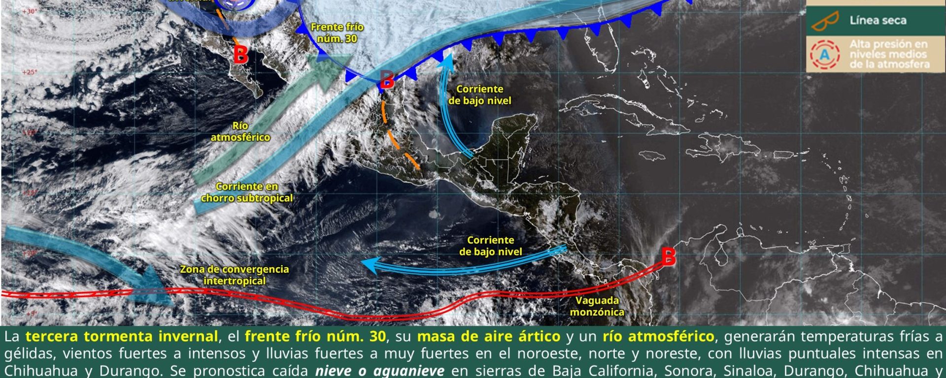 Posible caída de nieve o aguanieve, durante la mañana: zonas de Sonora, Chihuahua y Durango, así como en las cimas del Cofre de Perote y Pico de Orizaba.
