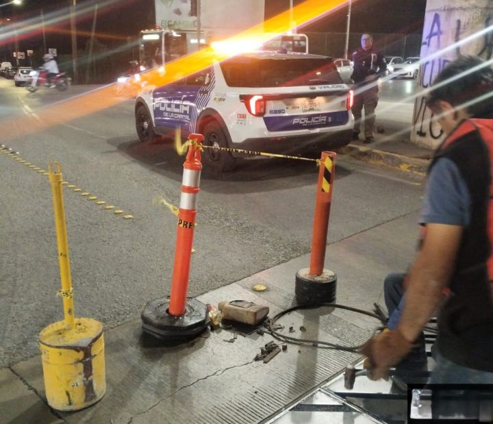 Cuadrillas de la Dirección de Obras Públicas concluyeron la reparación de una rejilla pluvial bajo el puente de Avenida Chapultepec, reforzando la seguridad vial y peatonal.