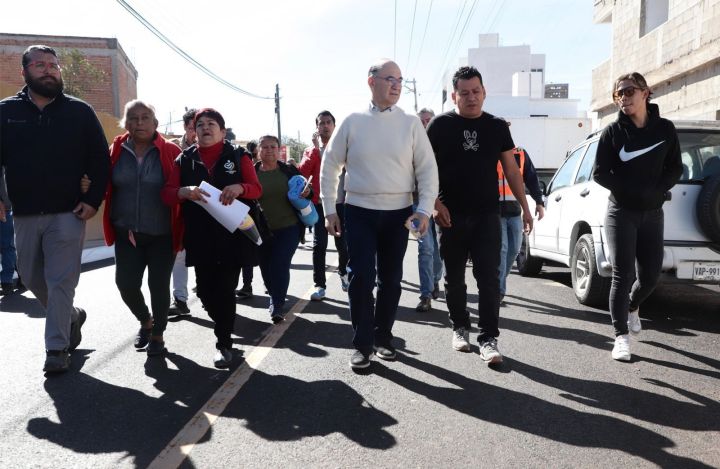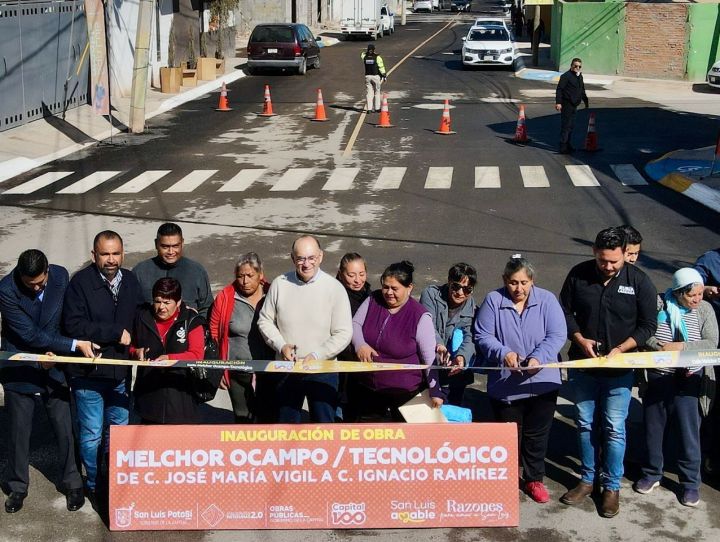 El Presidente Municipal Enrique Galindo entregó las calles Melchor Ocampo y Tecnológico, en la colonia Plan Ponciano Arriaga, al norte de la ciudad, vialidades que anteriormente eran de tierra y carecían de servicios básicos, y que hoy cuentan con pavimento, alumbrado, banquetas accesibles y redes nuevas de agua y drenaje, como parte de la transformación urbana que impulsa el Gobierno de la Capital.