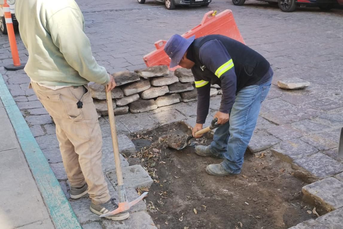 La atención se llevó a cabo tras detectarse daños en el empedrado que afectaban la circulación vehicular, particularmente en el tramo comprendido entre Zapata y Cuauhtémoc, un punto estratégico por la presencia de centros educativos, instalaciones médicas y espacios de alta concentración peatonal. Las cuadrillas municipales realizan labores de retiro de material dañado, nivelación y colocación de adoquín, además de trabajos correctivos para garantizar una superficie más estable y segura.