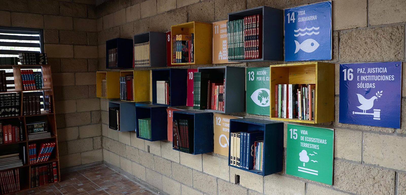 Apuntó Mendieta Rivera que la nueva Biblioteca se ubica en un espacio natural dentro de la mancha urbana que permaneció abandonado durante 15 años, y que hoy ha sido reconvertido en un centro cultural construido con materiales reciclados que forman parte del patrimonio municipal. Entre ellos destacan ventanas reutilizadas como medidas de protección sanitaria durante la pandemia por Covid-19 y un suelo elaborado con material resultante de la trituración de pinos navideños, transformados en abono orgánico para parques y jardines.