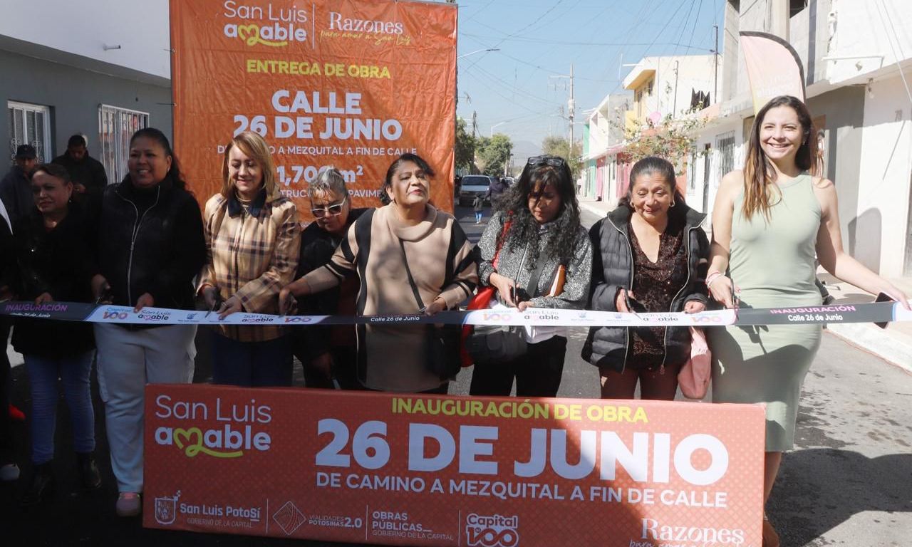 Como parte del sostenido impulso a la modernización de la infraestructura vial en San Luis Potosí, el ayuntamiento de la capital entregó la obra de pavimentación de la Calle 26 de Junio, en su cruce con Camino a Mezquital, ubicada en la fracción El Rosedal–Los Limones. La nueva vialidad, con una superficie de mil 700 metros cuadrados, completa el circuito previamente construido con la pavimentación de Camino al Mezquital, consolidando la conectividad de la zona y ofreciendo a las familias del sector una infraestructura urbana moderna y segura.