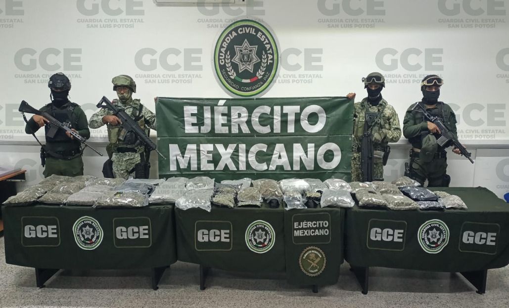 Efectiva estrategia de seguridad entre la Guardia Civil Estatal y Ejército mexicano, permitieron el aseguramiento de más de 17 kilogramos de marihuana, durante las labores de inteligencia, en el municipio de Villa de Reyes.