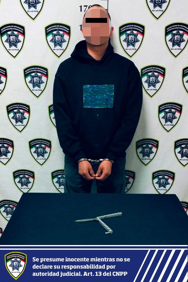 Al implicado de nombre José Daniel “N” de 33 años, se le realizó una inspección preventiva de seguridad, encontrándole en posesión de una navaja tipo mariposa con hoja metálica afilada de 10 centímetros.